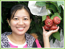 潔芳婆家有一塊農地,原本租給別人種芒果,但採收成果不如預期,潔芳與老公商量之後決定自己來栽種蓮霧,剛開始相當辛苦,因為蓮霧相當地嬌貴,雨水過多、溫度過高都不行,還必須擔憂颱風、寒流及不知名的病蟲害。即使是每天含辛茹苦,像是呵護小孩般地照顧蓮霧,還不惜成本餵蓮霧喝牛奶與雞蛋,讓蓮霧吃起來有水梨的口感;但今年比起去年來說還是欠收,只有一千斤左右的產量,想吃的朋友手腳可得夠快,要趕緊訂購,才不會看得到吃不到傷心流目屎。